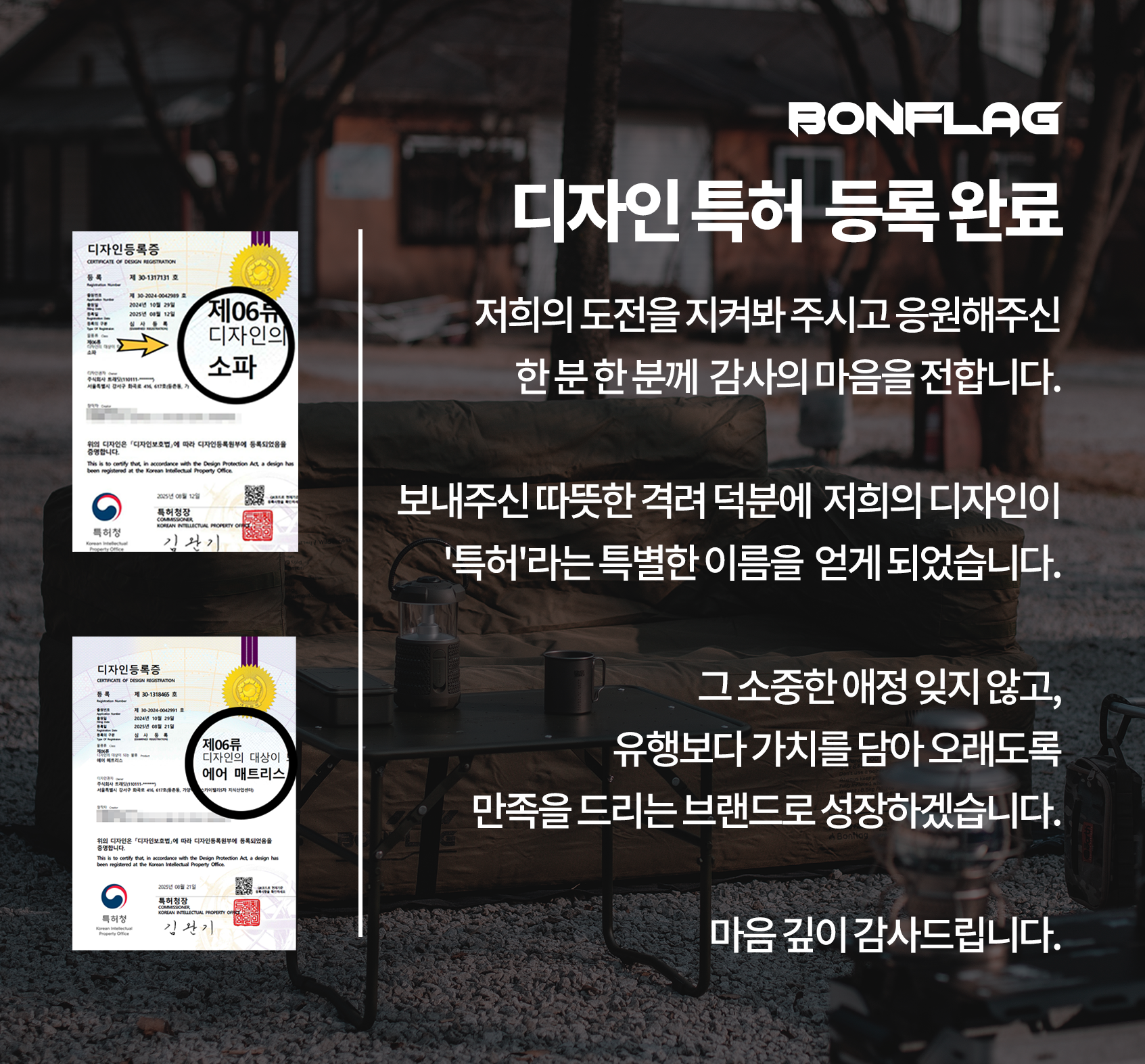 BONFLAG는 캠핑을 즐기는 모든 분의 편의와 즐거움, 안전을 최우선으로 생각하며,‘2인용 택티컬 에어소파’에도 이러한 원칙을 충실히 담아내기 위해 노력했습니다.
